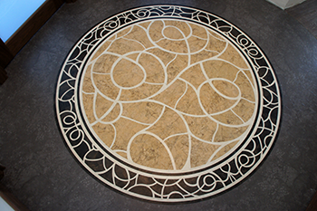 Работа наших мастеров. Из кварцвиниловой плитки создан очень красивый орнамент. Не сдерживайте свои фантазии - наши специалисты помогут воплотить их в жизнь!